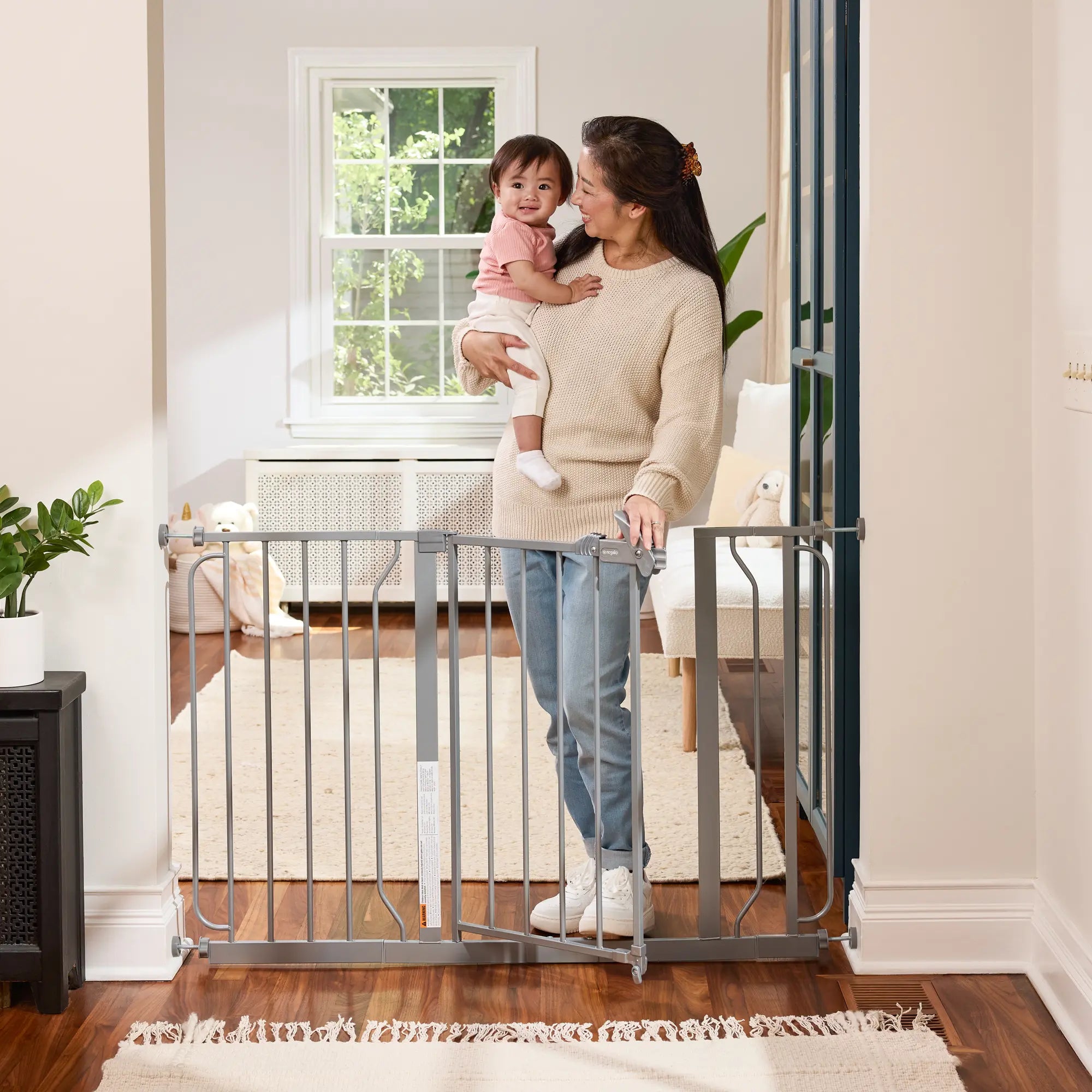 Your baby is now mobile, it’s time to childproof your house. The Regalo® Easy Step® Extra Wide Platinum Safety Gate is a safe and convenient way to contain and protect both your child and home.